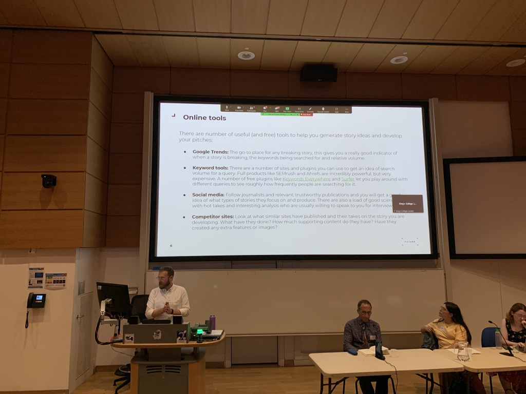 This lecture was full of helpful tips and pointers from established journalists and editors on how to make your hard work more visible online via social media, SEO, trending topics etc.