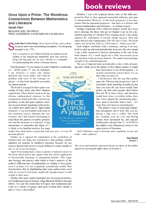 Full disclosure: I’ve no degree in either English or Mathematics – GCSE grade ‘C’ was my highlight. I am, however, a writer and student physicist who loves maths, and I had no problem with most of the concepts explored – so this book should be accessible for almost anyone.