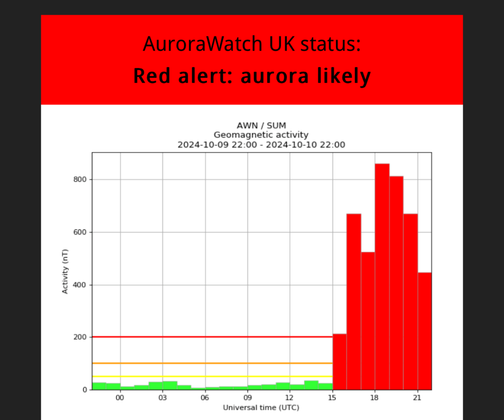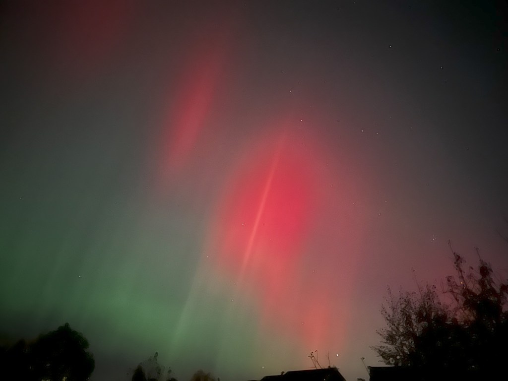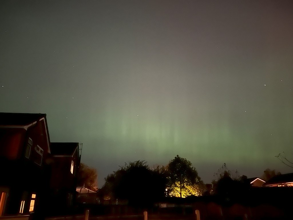 I’d been scrolling through Facebook just a few minutes earlier, when I saw that one of my friends had posted Aurora photos. A quick check of the AuroraWatch UK website revealed that this was no ordinary geomagnetic storm. In fact on a scale of 1 to ‘get the kids out of bed’, this was definitely in the latter category, so I grabbed my coat, and headed out into the garden.